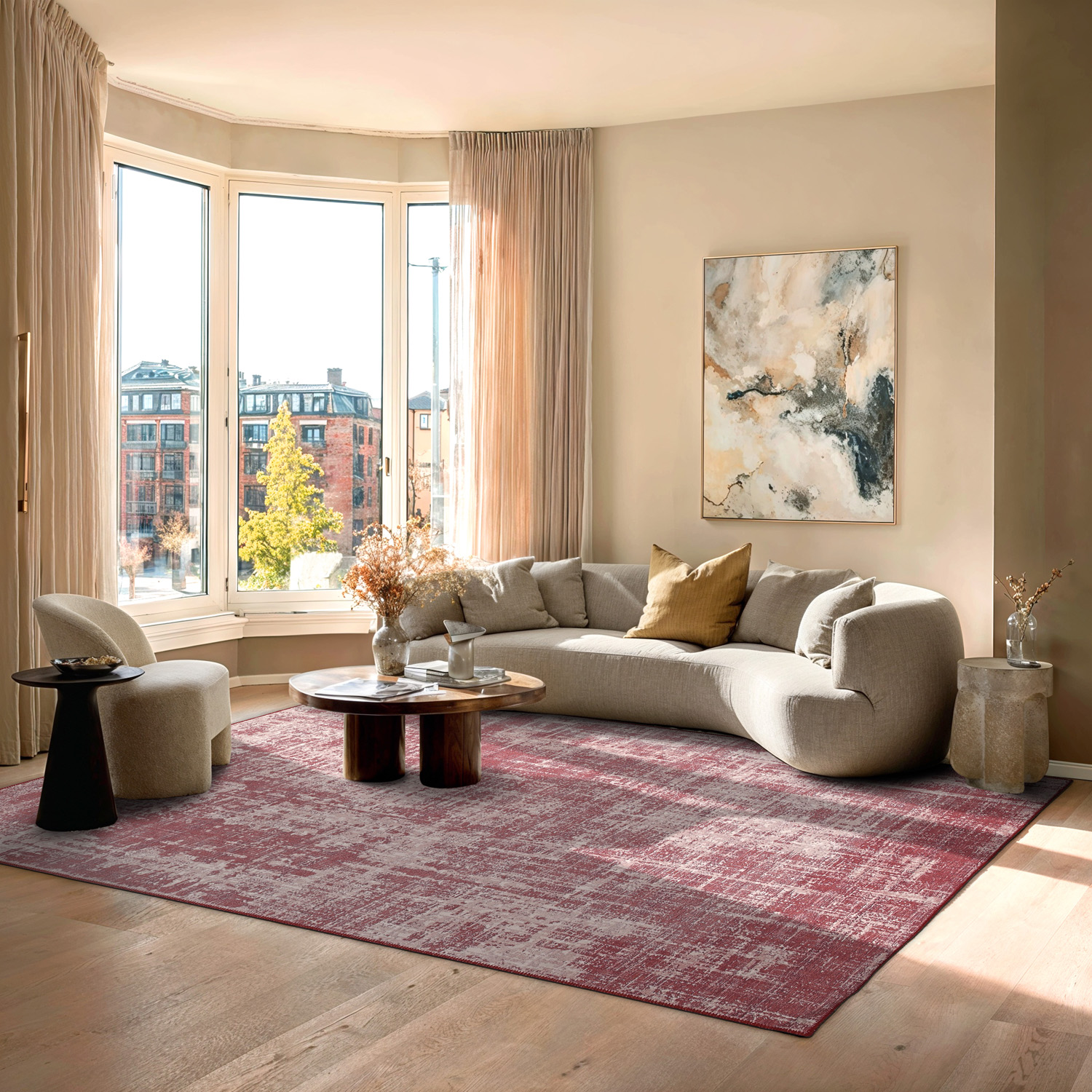 Stwórz ponadczasowy klimat w swoim domu dzięki tej płasko tkanej dywanowi w eleganckim stylu vintage. Trwała i cienka konstrukcja sprawia, że dywan jest łatwy do ułożenia i prosty w pielęgnacji, a pięknie postarzały wzór dodaje wnętrzu ciepła i charakteru. Idealny pod stół jadalniany, do salonu lub przedpokoju – dywan, który łączy praktyczną funkcję z klasycznym designem.